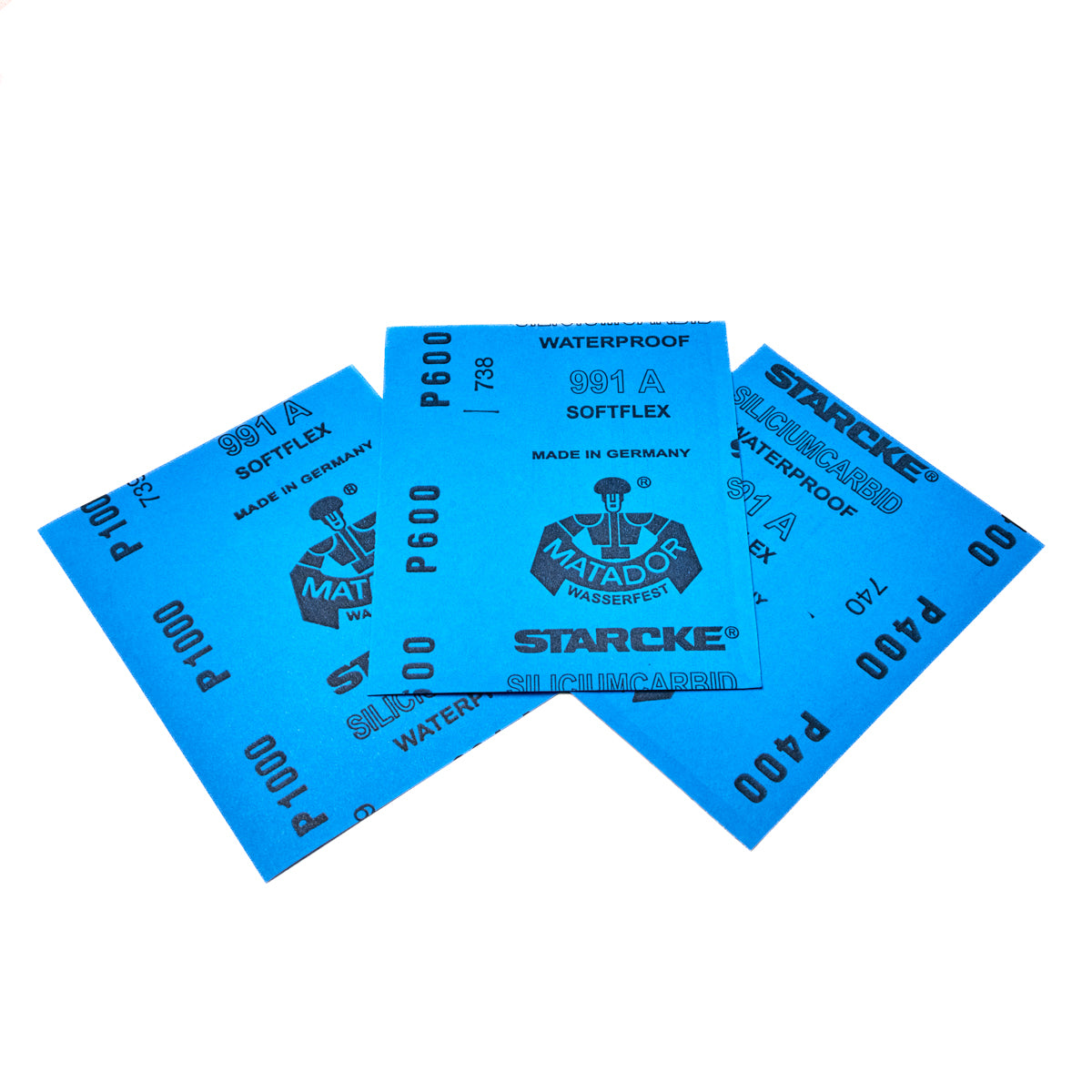 This waterproof sandpaper is manufactured by STARCKE, a long-established German manufacturer of abrasive cloth and paper, founded in 1829.